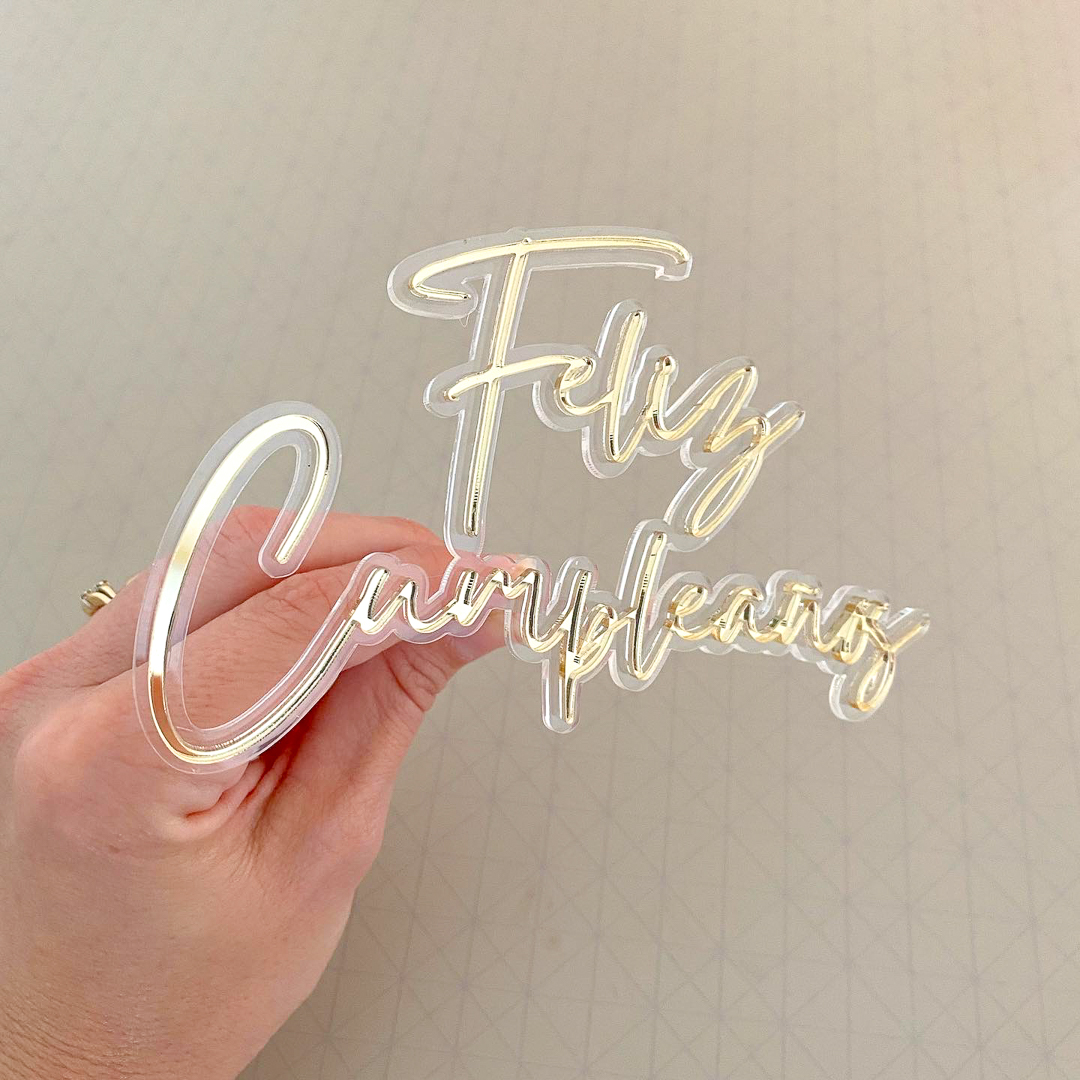 Este topper frontal va en frente de tu tarta. El borde transparente le da un efecto flotante de lo más único y guay!