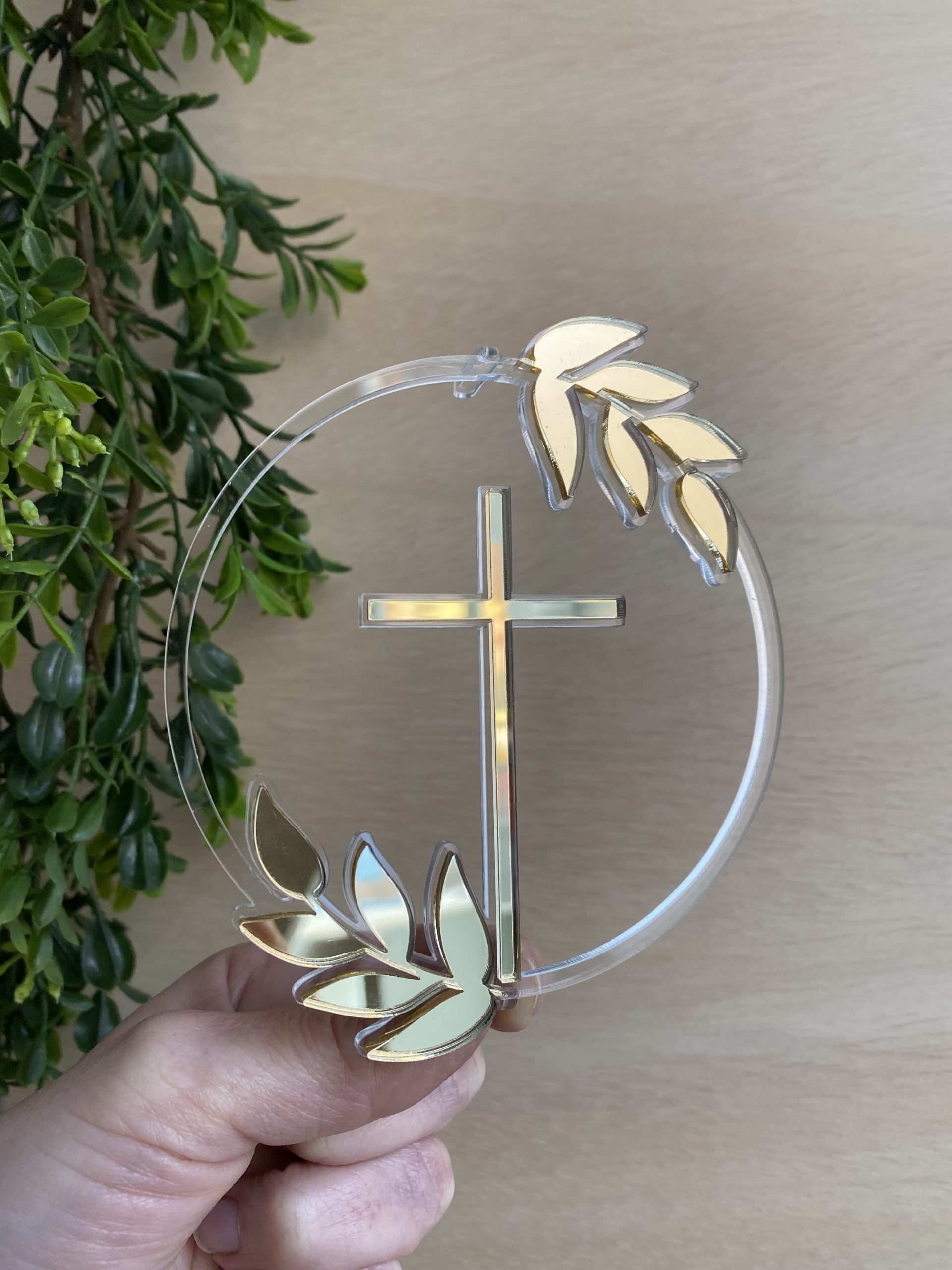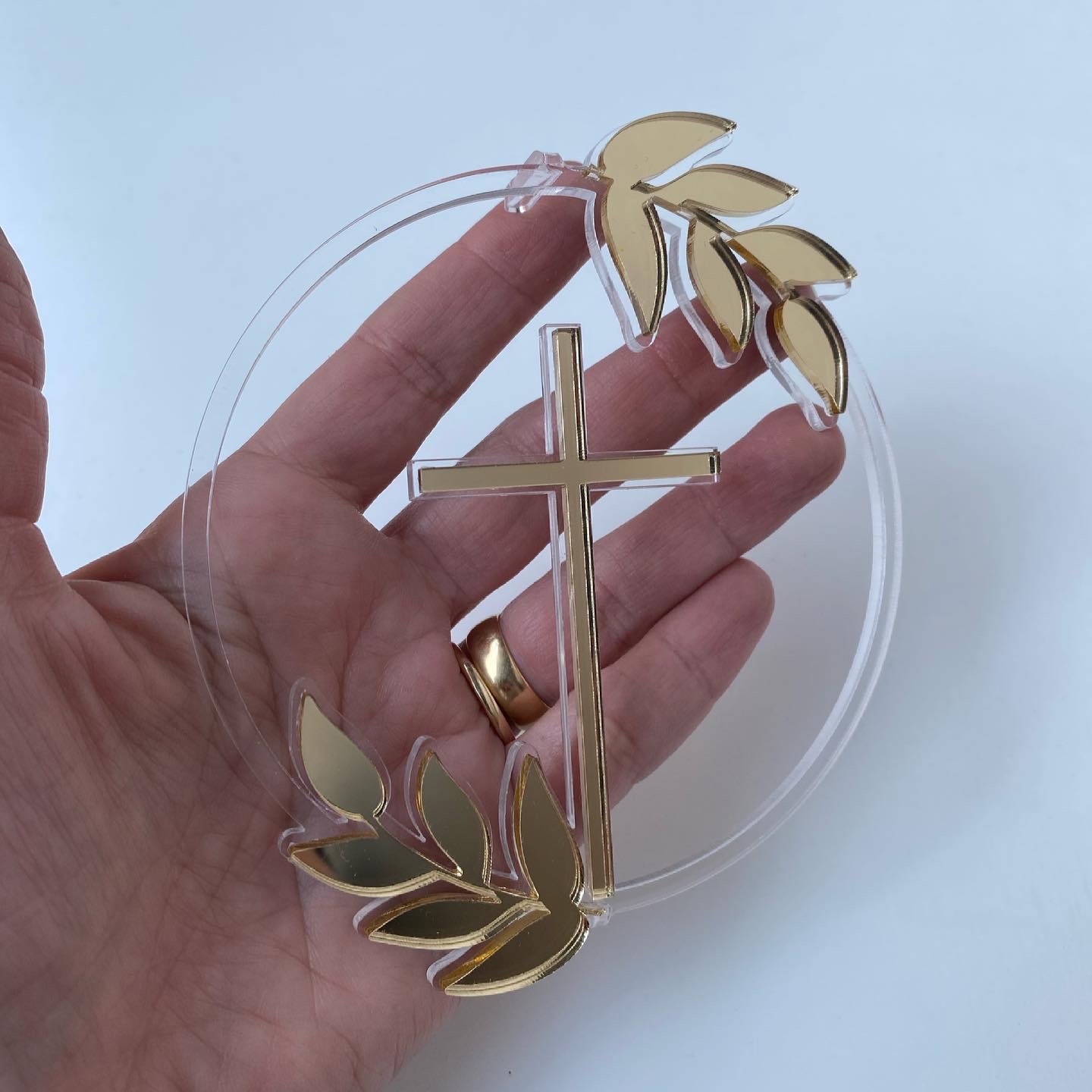 This round cake plaque beautifully designed and made in our creative studio s made to go on the front of your cake, elevating the overall look of your event!