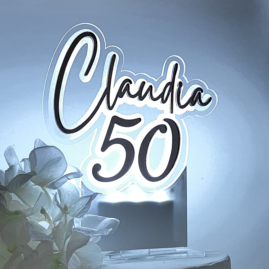 The most outstanding item in our creative studio, our light-up line is all the rave! Not just a cake topper, but a one-of-a-kind art piece. Use it as a topper on your event, and then keep it as a personalized night-light that will always remind you of that special moment.