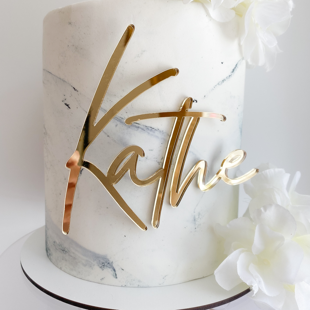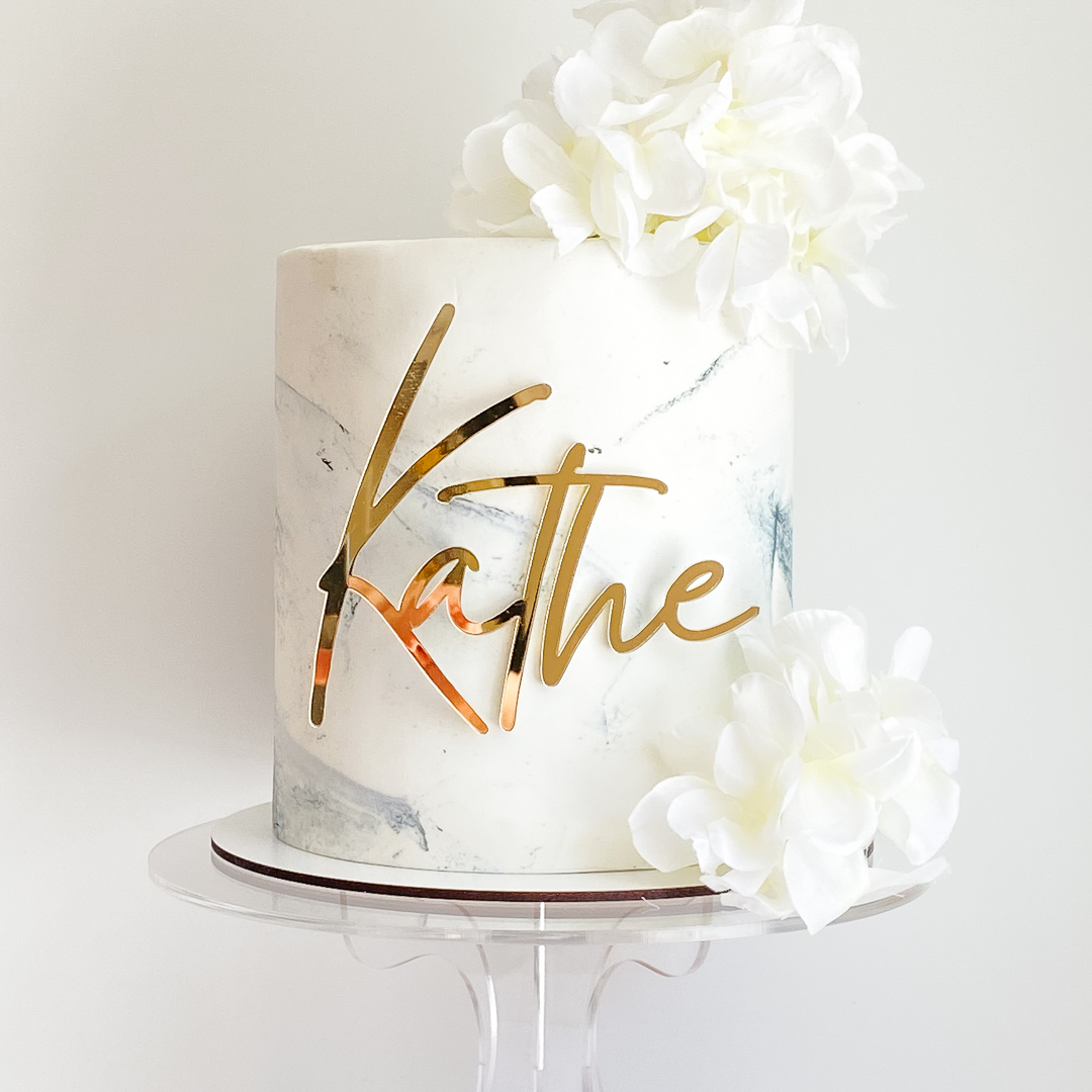 An incredibly unique addition to any cake, our name plaques are made to decorate the front of your cake. Pair this design with our favorite modern script and voilà!