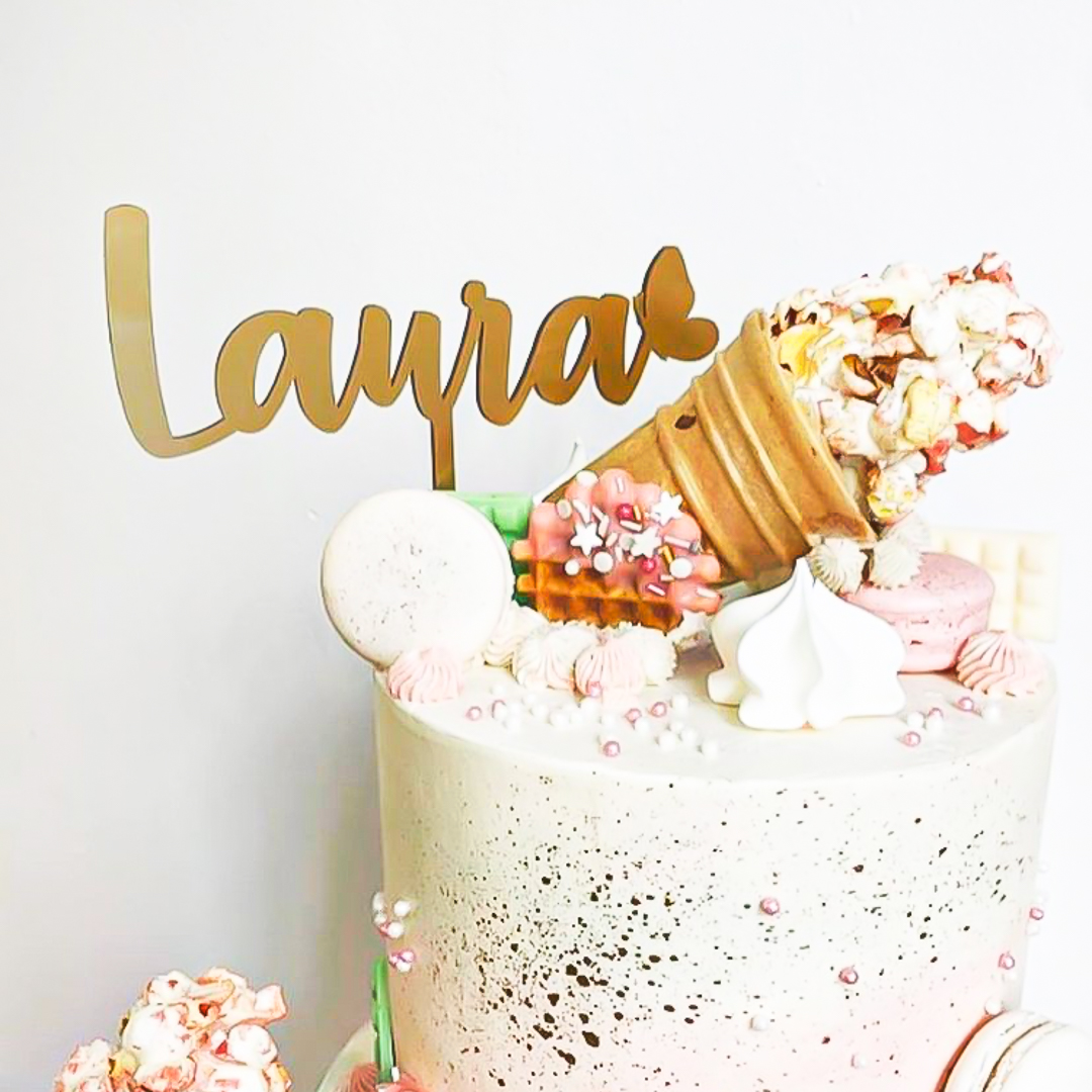Topper Nombre con Mariposa Unicolor